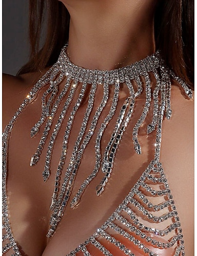 Женское ожерелье-чокер с бахромой из стразов — эффектное блестящее украшение для клубных, коктейльных и вечерних образов
