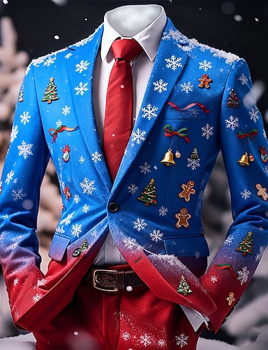 Муж. Блейзер Пальто Рождество Повседневные На каждый день Наступила зима 100% полиэстер Новогодняя ёлка Рождественский колокол 3D печать Пуговицы Сохраняет тепло Удобный Однобортный крой Блейзер