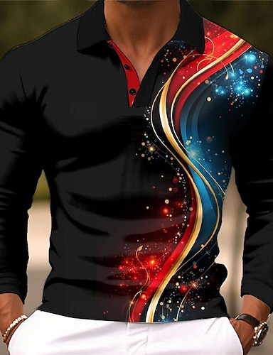 Муж. Абстракция геометрический Поло Длинный рукав Футболки поло Рубашки с воротником Деловая одежда Бизнес Одежда для спорта и отдыха На каждый день 3D печать Пуговицы Весна Осень Зима