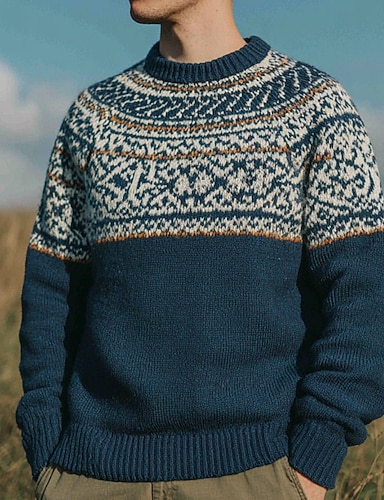 Новогодняя тематика Муж. Свитер с узором «фэр-айл» Пуловер Свитер Вязаная одежда "Круглый вырез ""под горло""" На каждый день Отпуск Повседневные 3D печать Сохраняет тепло Длинный рукав