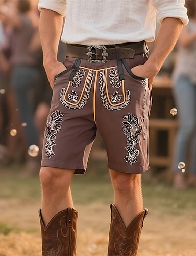 Муж. Шорты Летние шорты Рабочие шорты Карман Пуговицы Цветочные Комфорт Короткие на открытом воздухе Отпуск На каждый день баварский Кофейный