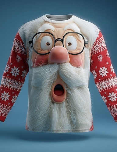 Новогодняя тематика Муж. Дед Мороз Смешной Футболка Длинный рукав Футболка 3D печать Вырез под горло Рубашка Мода Классический 3D Для улицы Повседневные Красный 3 Черный Красный Лето Весна Одежда S M