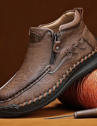 Мужские коричневые повседневные мокасины с боковой молнией, прошитой вручную нескользящей подошвой, удобная повседневная обувь для работы, вождения и выходных