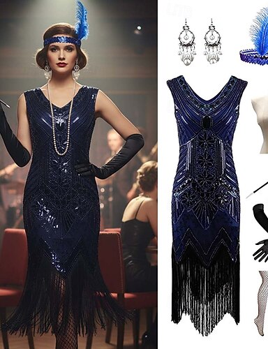 Ретро Бурные 20-е 1920-е годы Полдень Платье для флаперов Платья Необычные костюмы Большие размеры Великий Гэтсби чарльстон Пайетки С кисточками Перо Маскарадный костюм Жен.