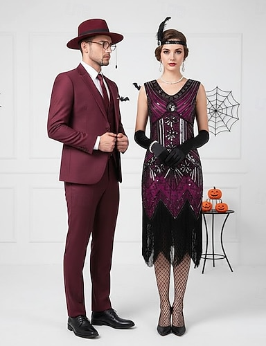 Ретро Бурные 20-е 1920-е годы Полдень Платье для флаперов Необычные костюмы Групповые костюмы для пар на Хэллоуин Великий Гэтсби Пайетки С кисточками Маскарадный костюм Муж. Жен. Хэллоуин Карнавал