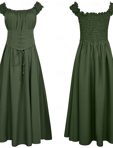 Ретро Средневековый Эпоха возрождения Макси Платья Викинг Кельтский рыцарь Корсет Маскарадный костюм Жен. Селтик Викинг Хэллоуин Карнавал Выступление Для вечеринок РИЖД Взрослые Платье