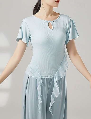 Латиноамериканские танцы Бальные танцы Блестящий топ с оборками однотонный женский выступление для тренировок с короткими рукавами из полиэстера