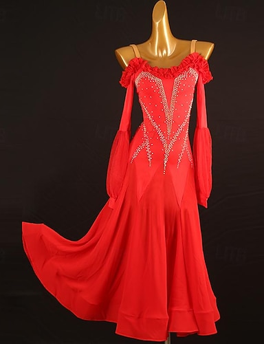 Бальные танцы Платье Стразы Жен. Выступление Для вечеринок Длинный рукав Искусственный шёлк