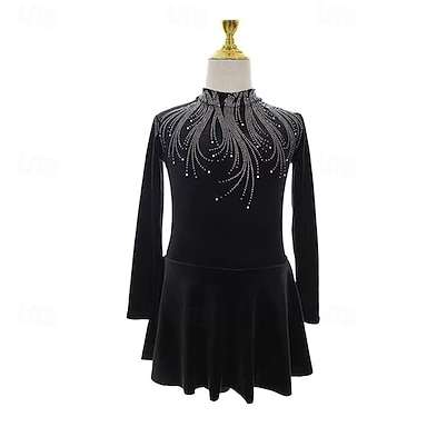 Платье для фигурного катания Жен. Девочки Катание на коньках Платья Черный Пэчворк Открытая спина Сетка Эластичность Учебный Соревнование Одежда для фигурного катания Классика Стразы Длинный рукав