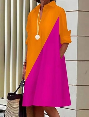 Жен. Мини-платье Платье-футболка Летнее платье На каждый день Повседневные Стандартный Графика Геометрический принт Контрастных цветов Длинный рукав Вырез под горло Красный Синий Лиловый Коричневый