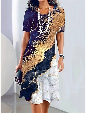 Жен. Платье средней длины Платье с принтом Мода Современное Повседневные Чаепитие На выход Свободное облегание Цветочный принт Абстракция С короткими рукавами Вырез под горло
