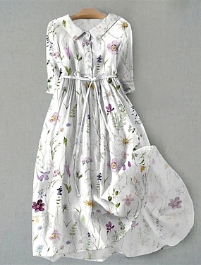 Жен. Платье средней длины Платье-рубашка Повседневное платье Мода Современное Повседневные Пляж выходные Стандартный Цветы Рукав до локтя Рубашечный воротник Белый Лиловый Серый Лето Весна
