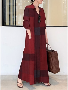 Жен. Мини-платье Платье A-силуэта На каждый день Повседневные Стандартный В клетку Длинный рукав С открытыми плечами Черный Красный Темно синий Насыщенный синий Весна Осень Зима