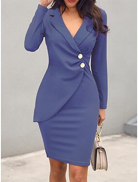 Жен. Платье средней длины Повседневное платье Рабочее платье Атласное платье Элегантный стиль Мода Современное на открытом воздухе Повседневные На выход Стандартный Полотняное плетение Длинный рукав