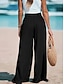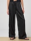 Жен. Атласные брюки Широкие Чино Уличный стиль На каждый день Полная длина Нормальная Полотняное плетение Кулиска Карман Удобный Неэластичная на открытом воздухе Повседневные Черный Лето Весна