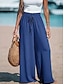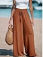 Жен. Широкие Брюки Отпуск Винтаж Этнический стиль Полная длина Завышенная Сплошной цвет Полотняное плетение Неэластичная Черный Насыщенный синий Цвет Хаки Лето Весна Осень Зима Свободное облегание
