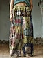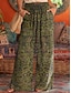 Жен. Широкие Чино Отпуск Винтаж Этнический стиль Полная длина Завышенная Кулиска Пэчворк Рисунок Неэластичная На каждый день Праздники Черный Светло-Зеленый крем Темно-зеленый Лето Весна Осень