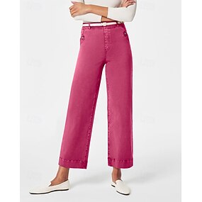 Жен. Брюки Прямой силуэт Уличный стиль На каждый день Полная длина Средняя талия Полотняное плетение Карман Эластичная талия Пряжка удобный Для улицы Праздники выходные