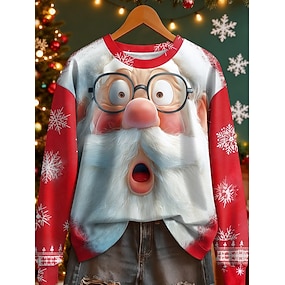 Новогодняя тематика Муж. Дед Мороз Толстовки Толстовка Толстовка Длинный рукав Толстовка Вырез под горло Для вечеринки На каждый день 3D печать Для вечеринок Праздники Crewneck Зима Весна & осень