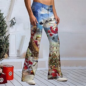 Новогодняя тематика Муж. Дед Мороз В снежинку Новогодние костюмы Штаны Костюм Костюм Брюки Нормальная На каждый день на открытом воздухе Праздники Брюки прямого кроя с карманами Весна Осень Зима 3D