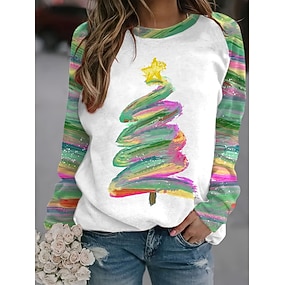 Жен. Пуловер Толстовка Графика Новогодняя ёлка Мода На каждый день Длинный рукав Вырез под горло Круглый вырез Обычные топы Для улицы На каждый день С принтом