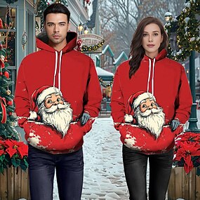 Новогодняя тематика Дед Мороз Толстовка Забавная рождественская толстовка с капюшоном 3D Рождество Передний карман Графический Назначение Для пары Муж. Жен. Взрослые Маскарад 3D печать