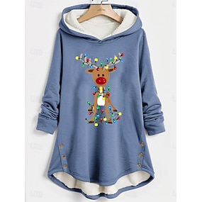 Жен. Толстовка с капюшоном и пуловером Графика Северный олень Рождество Теплый На каждый день нечеткий Длинный рукав Капюшон Длинные топы Повседневные Спорт С принтом Розовый Синий Серый Осень Зима