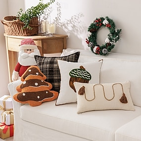 Наволочка в рождественском стиле, вышитая наволочка с изображением елки, праздничная декоративная подушка для дивана, спальни и кровати