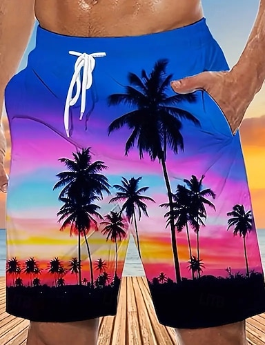 Муж. Обтягивающие длинные шорты Купальные шорты Эластичная ткань в 4 направлениях Пляжные шорты Нижняя часть Кулиска С карманами Плавание Серфинг Пляж Водные виды спорта тропический С принтом