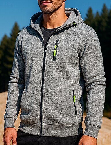 Муж. Куртка для активного отдыха Куртка с капюшоном Карман Полный почтовый индекс Длинный рукав Верхняя часть Одежда для спорта и отдыха Осень Однотонный С защитой от ветра