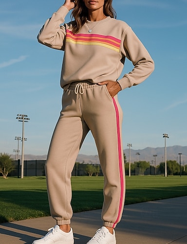 Жен. Спортивный костюм из двух частей Комплекты спортивных костюмов Спортивная одежда с карманом Полоски Наборы одежды Осень Темно-розовый Белый Назначение На открытом воздухе Путешествия