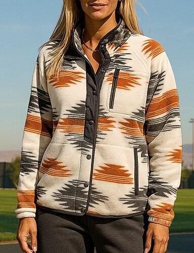 Жен. Флисовая жилетка пальто для отдыха на открытом воздухе Богемный С карманами Длинный рукав Верхняя часть Одежда для спорта и отдыха Осень Пэчворк С защитой от ветра Мода Теплый
