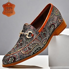 Муж. Мокасины и Свитер Обувь с принтом Официальная обувь Платья Кожа Итальянская цельнозерновая коровья кожа Удобный Против скольжения Лоферы Красный Коричневый