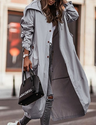 Жен. Куртка из шерпа Удобный Дышащий Пуговицы Элегантный стиль На каждый день Полотняное плетение Отпуск Для улицы Повседневные На каждый день Однобортный крой Длинная Капюшон Стандартный