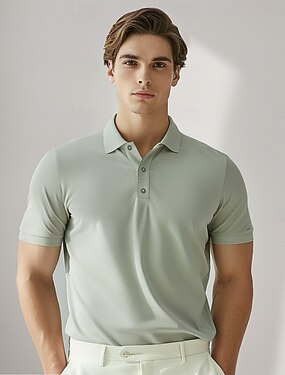Муж. Поло Вязать Поло Бизнес Повседневные Лацкан С короткими рукавами Формальная Сплошной цвет Пуговицы Лето Черный Каменисто-зеленый Светло-зеленый Темно синий Темно-Серый Серый Поло