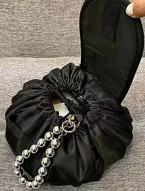 волшебная косметичка черная косметичка на шнурке для женщин, портативная водонепроницаемая косметичка-органайзер с цепочкой из жемчуга, дорожная косметичка
