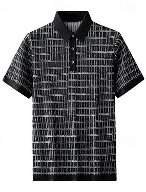Муж. Поло Вязать Поло Бизнес Повседневные Лацкан С короткими рукавами Формальная Офис Клетки Пэчворк Лето Черный Светло-зеленый Темно-зеленый Оранжевый Поло
