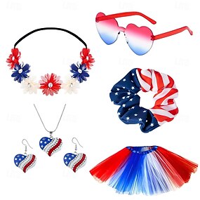 Набор 250-летие США В стиле 1980-х Головные уборы пачка Под юбкой с аксессуарами Маскарадный костюм Жен. Хэллоуин Карнавал Маскарад День независимости 4 июля Взрослые