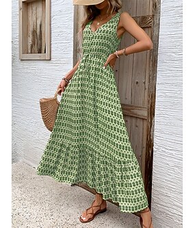 Жен. Длинное платье Повседневное платье Платье в стиле 50-х годов Платье A-силуэта Платье-майка Стиль На каждый день Отпуск Повседневные Стандартный Геометрический принт Без рукавов V-образный вырез