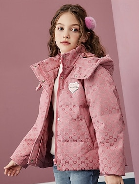 Дети Девочки Пальто Верхняя одежда Пух Пуховик Графика Уличный стиль Пэчворк Карман Отпуск Пальто Верхняя одежда 4-12 лет Осень Розовый