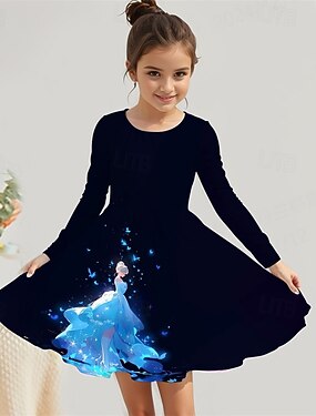 Девушки ' 3D СКАЗОЧНЫЙ Платье Длинный рукав 3D печать Весна Осень Отпуск Для занятий спортом Повседневные Симпатичные Стиль На каждый день Красивый Дети 3-12 лет Повседневное платье Платье A-силуэта