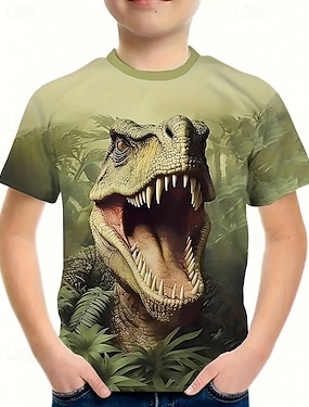 Мальчики 3D Динозавр Футболка С короткими рукавами Лето Весна Мода Классический Дети 4-12 лет Вырез под горло на открытом воздухе Повседневные Стандартный