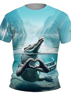 Мальчики 3D Графика Животное Под крокодила Футболка С короткими рукавами Лето Весна Мода Классический Дети 4-12 лет Вырез под горло на открытом воздухе Повседневные Стандартный