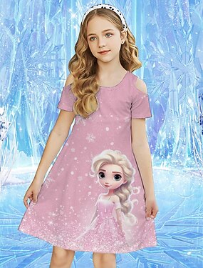Девушки ' 3D Графика Мультипликация В снежинку Платье С короткими рукавами Лето Весна Отпуск Повседневные Праздники Красивый Милая Дети 4-12 лет Повседневное платье До колена Стандартный