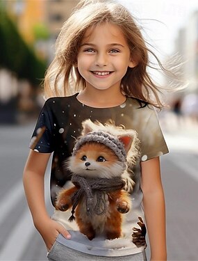 Девочки 3D Животное Футболка С короткими рукавами Лето Весна Мода Классический Дети 4-12 лет Вырез под горло на открытом воздухе Повседневные Стандартный
