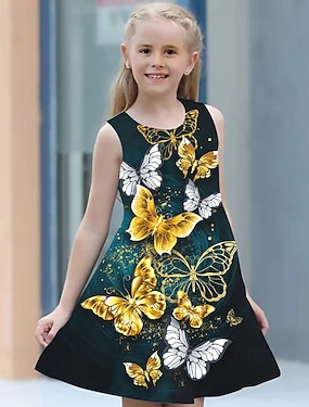 Девушки ' 3D Бабочка Платье Без рукавов Лето Весна Отпуск Повседневные Праздники Принцесса Красивый Милая Дети 4-12 лет Повседневное платье Платье A-силуэта До колена Стандартный