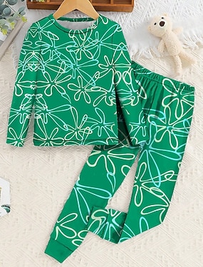 Девочки 3D Цветочный принт Графика Рождественская пижама Пижамные комплекты Пижамные комплекты футболок и брюк Длинный рукав 3D печать Осень Зима Активный Классический Дети 4 года + Вырез под горло