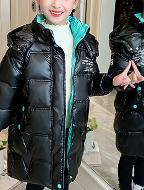 Дети Девочки Пух Пуховик Детская куртка-пуховик Круто на открытом воздухе Пальто Верхняя одежда 3-12 лет Осень Черный Синий