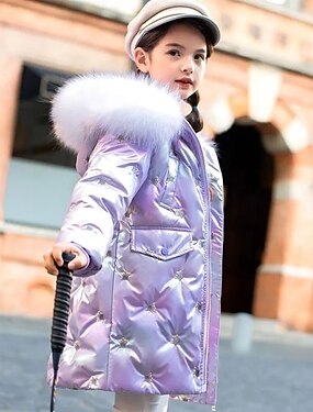 Дети Девочки Пуховик Куртка для активного отдыха Сплошной цвет Мода Меховая оторочка Сохраняет тепло Защита от ветра на открытом воздухе Пальто Верхняя одежда 4-12 лет Осень Розовый Лиловый Бежевый