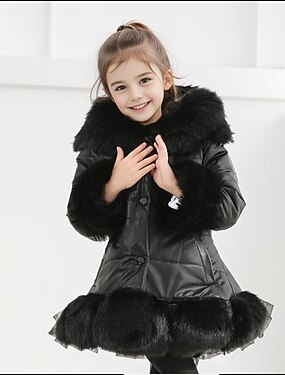 Дети Девочки Пух Сплошной цвет Мода Меховая оторочка Молния Карман Школа Хлопок Пальто Верхняя одежда 4-12 лет Зима Черный Розовый Красный